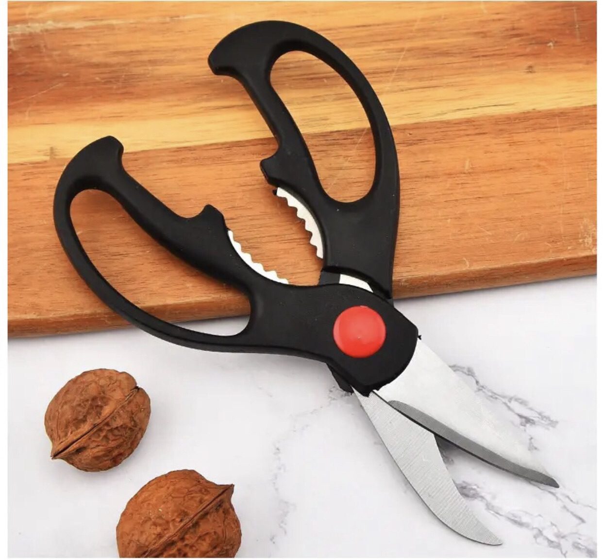 Multi-Purpose Use – Works as scissors, bottle opener & nut cracker – all in one tool! 🍾🥜✂️